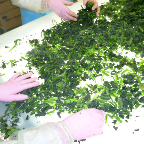 収穫後すぐに洗浄カット冷凍します。